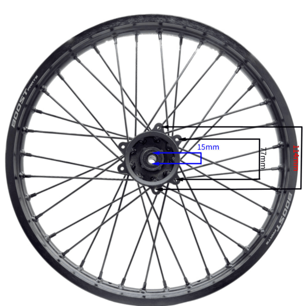 FELGA 17″ PRZÓD 1,6 CROSS 125CC CZARNA FI15 WZMOCNIONA