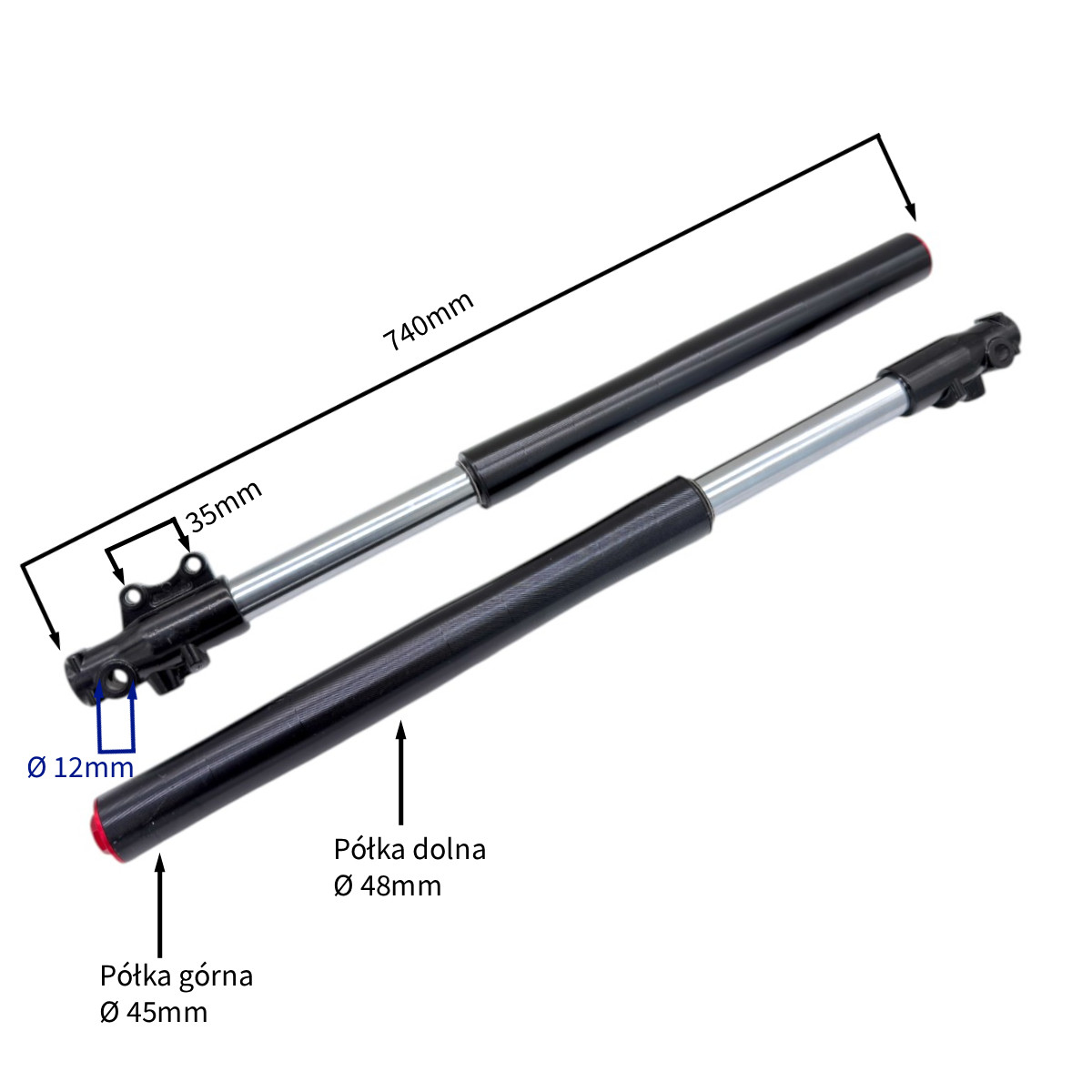 AMORTYZATORY PRZÓD CROSS 125CC 17/14 KPL 74CM