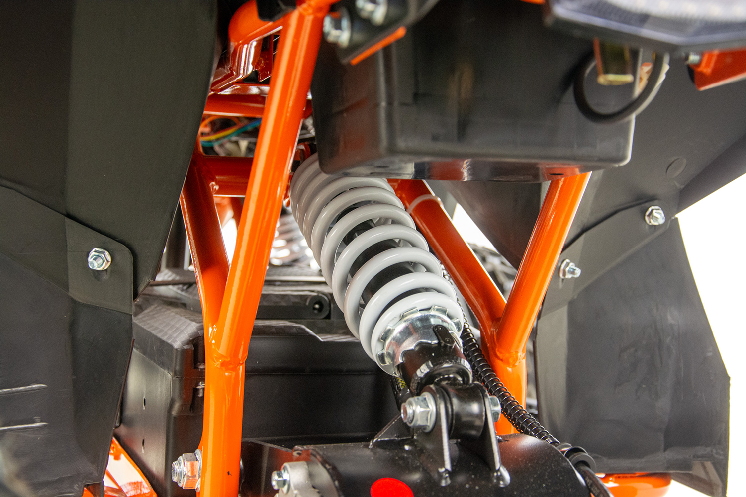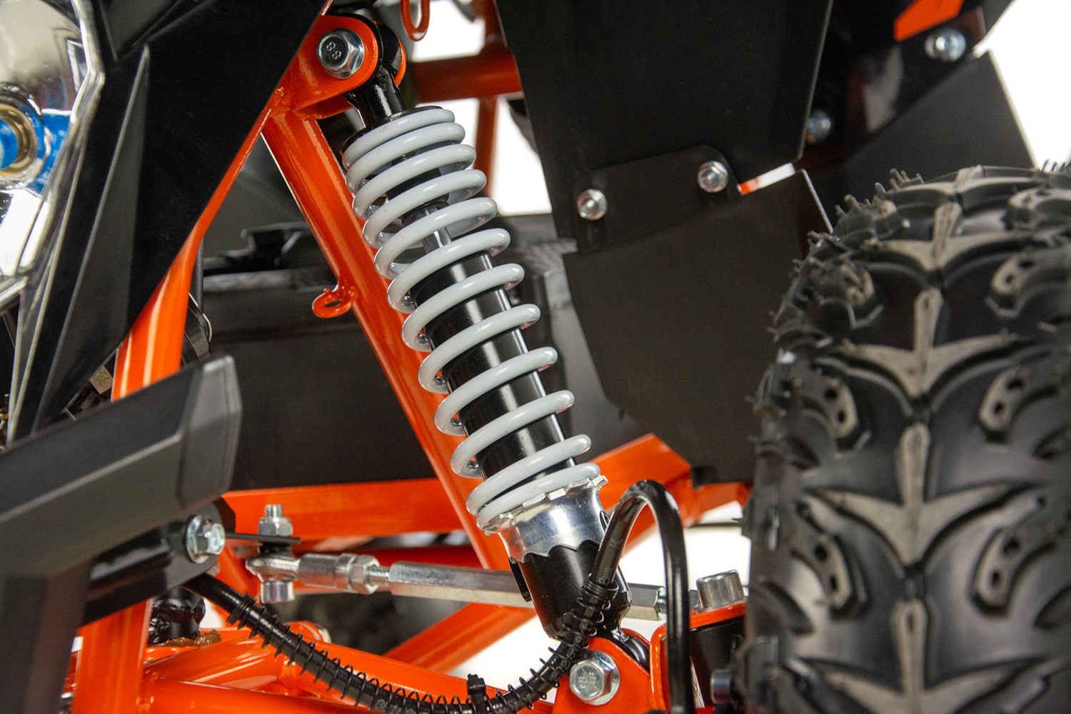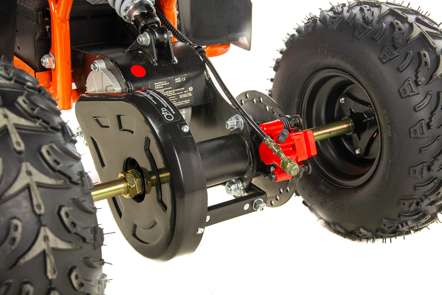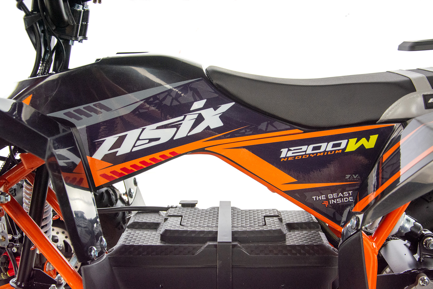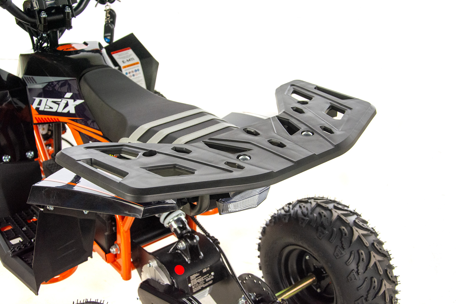 Mini quad ASIX E-DRAKE to pojazd z elektrycznym silnikiem bezszczotkowym, neodymowym o mocy 1200W. Zasilany jest zespołem baterii o łącznym napięciu 48V12Ah. Wyposażony w płynną regulację prędkości oraz regulację opóźnienia startu. Model ten posiada bieg wsteczny. Przeznaczony jest dla dzieci od 120cm wzrostu. Quad na dużych 6″ kołach, wyposażony w przednie i tylne oświetlenie LED, pilot zdalnego gaszenia pojazdu, klakson, hamulce hydrauliczne oraz olejowe amortyzatory.