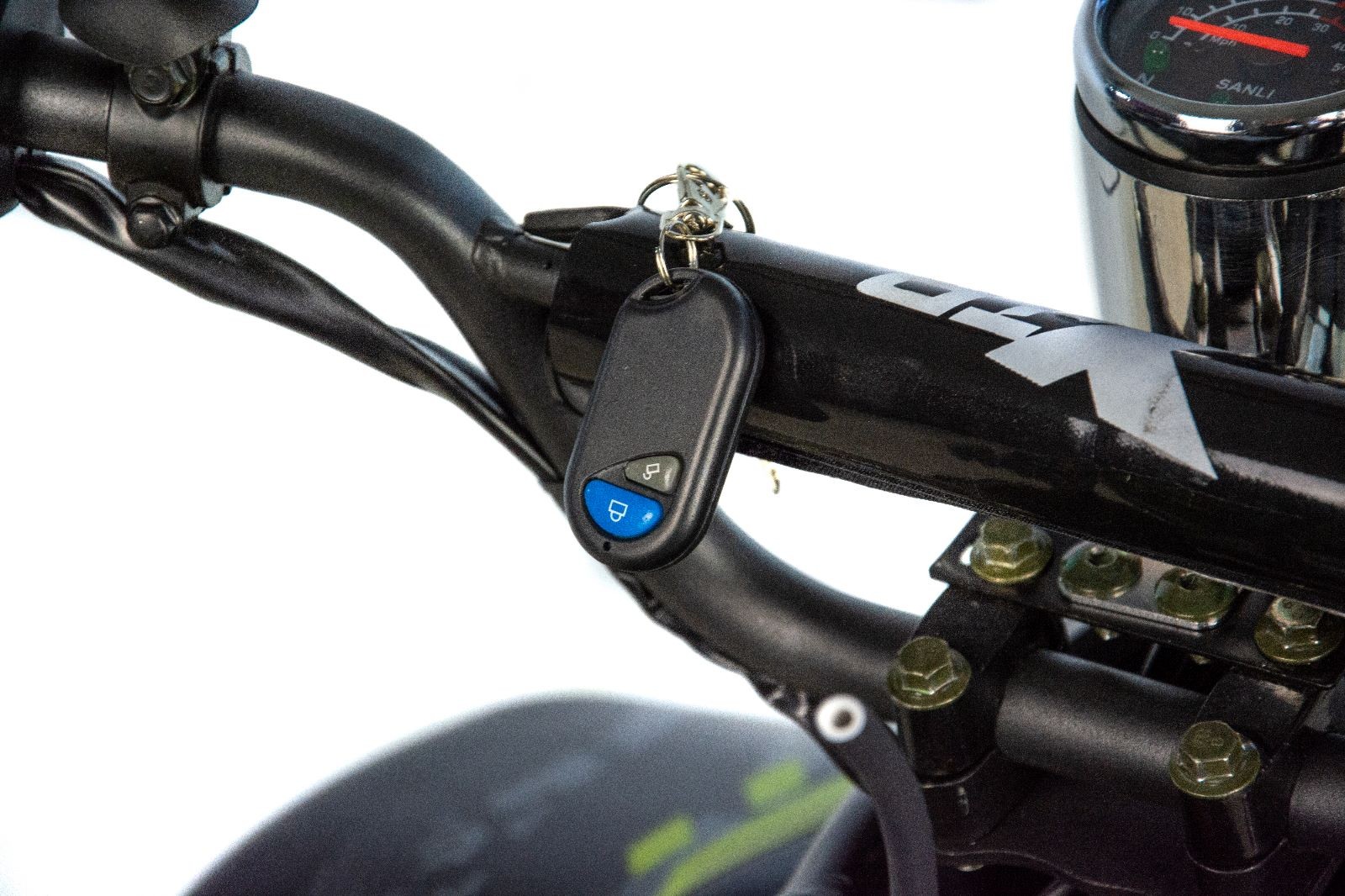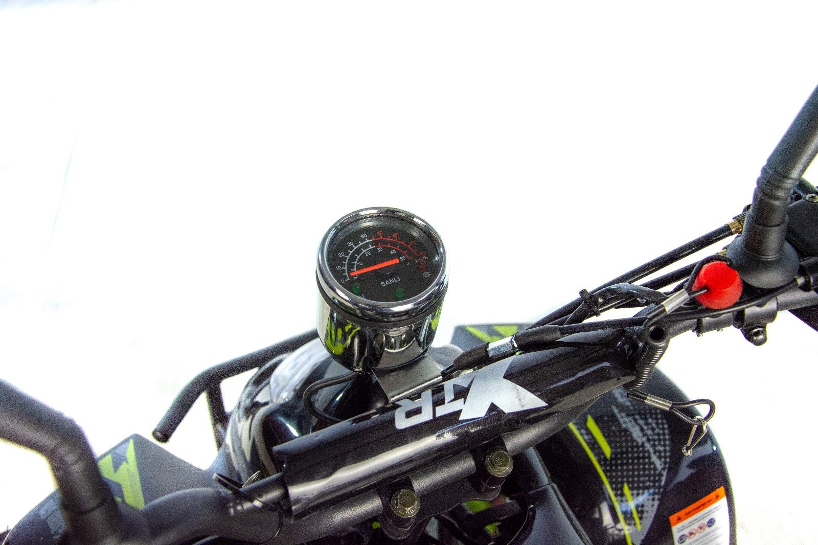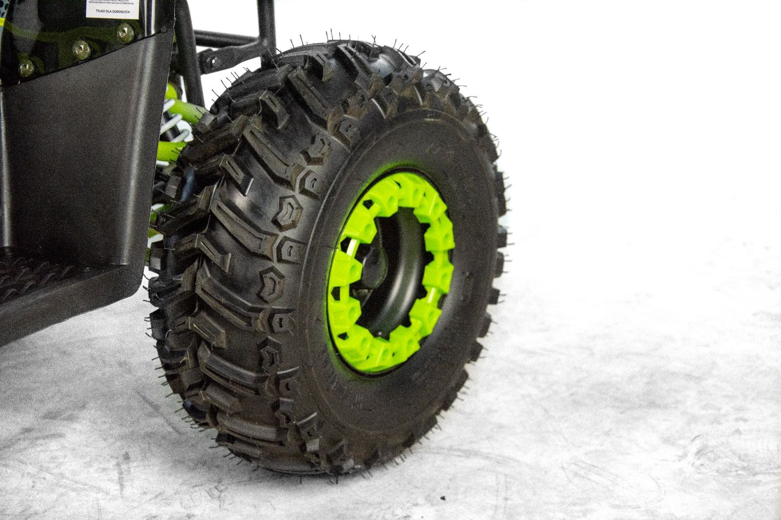 Quad XTR 001 Big Foot odpalany z rozrusznika elektrycznego to pojazd z silnikiem czterosuwowym o pojemności 125cm3 dla dzieci od 6 lat. Sportowy quad z oświetleniem przód/tył, biegiem wstecznym, zrywką bezpieczeństwa oraz regulacją prędkości na kołach 7″