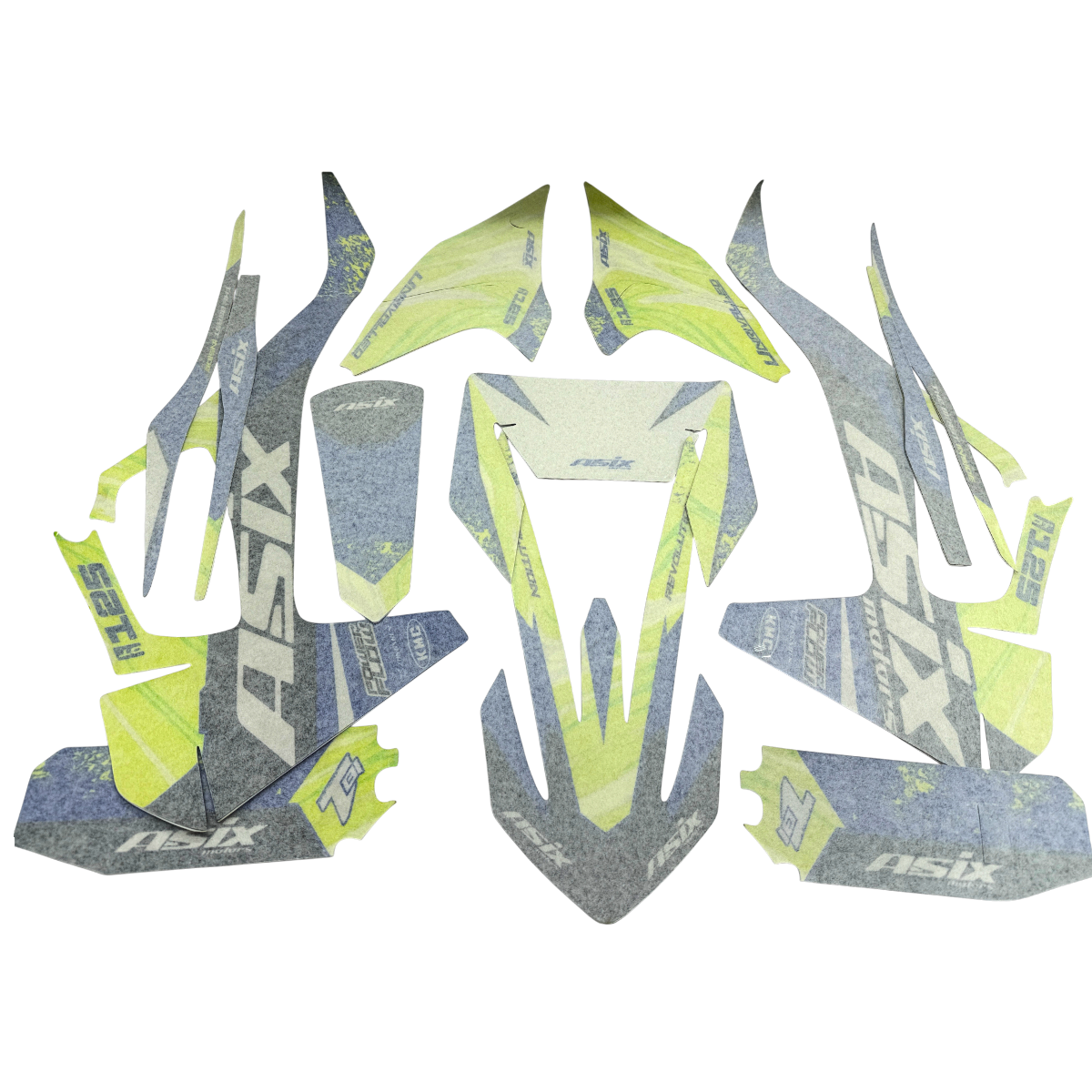 ZESTAW NAKLEJEK NA POJAZD CROSS 125CC NIEBIESKO-LIMONKOWE