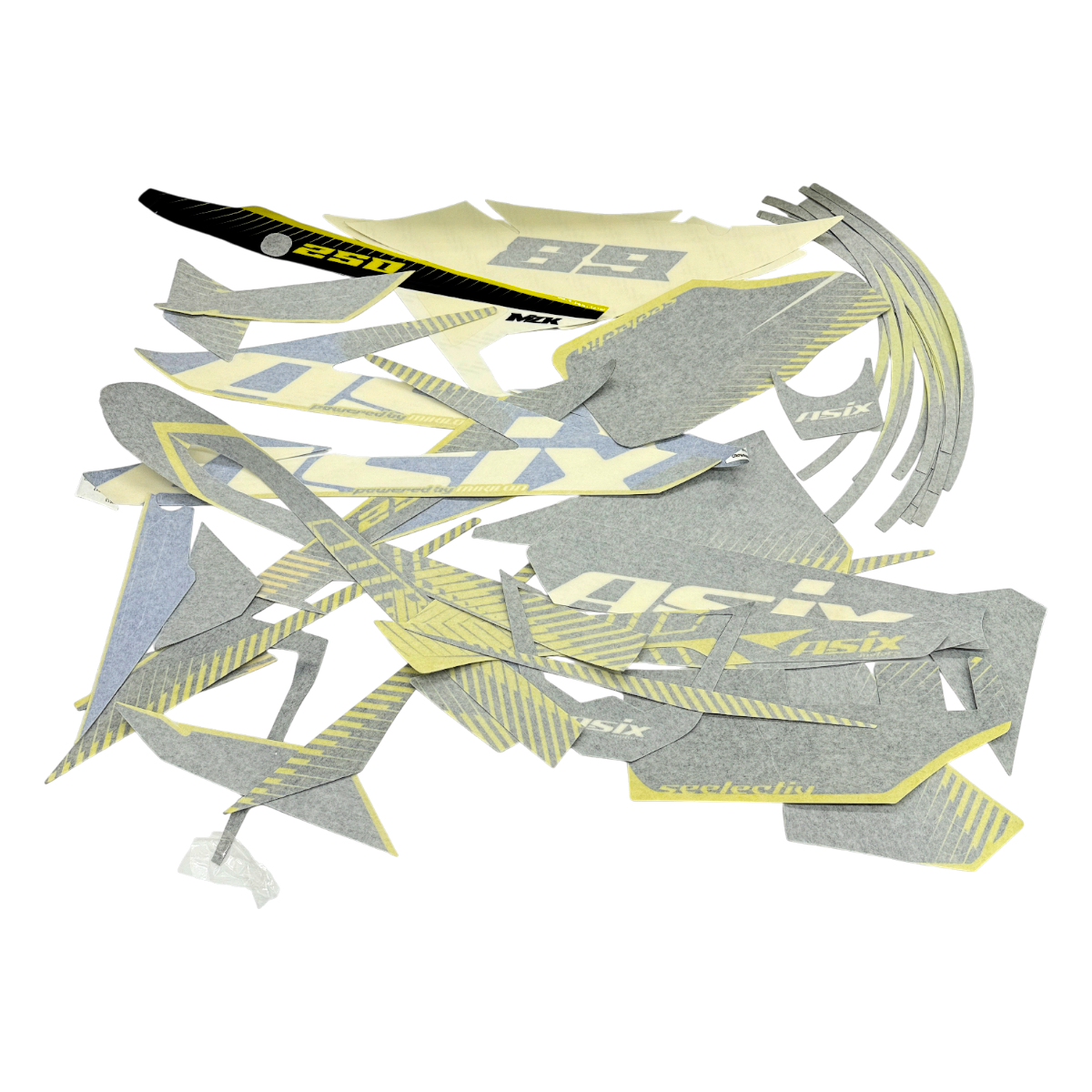 ZESTAW NAKLEJEK NA POJAZD CROSS 250CC NIEBIESO ŻÓŁTE